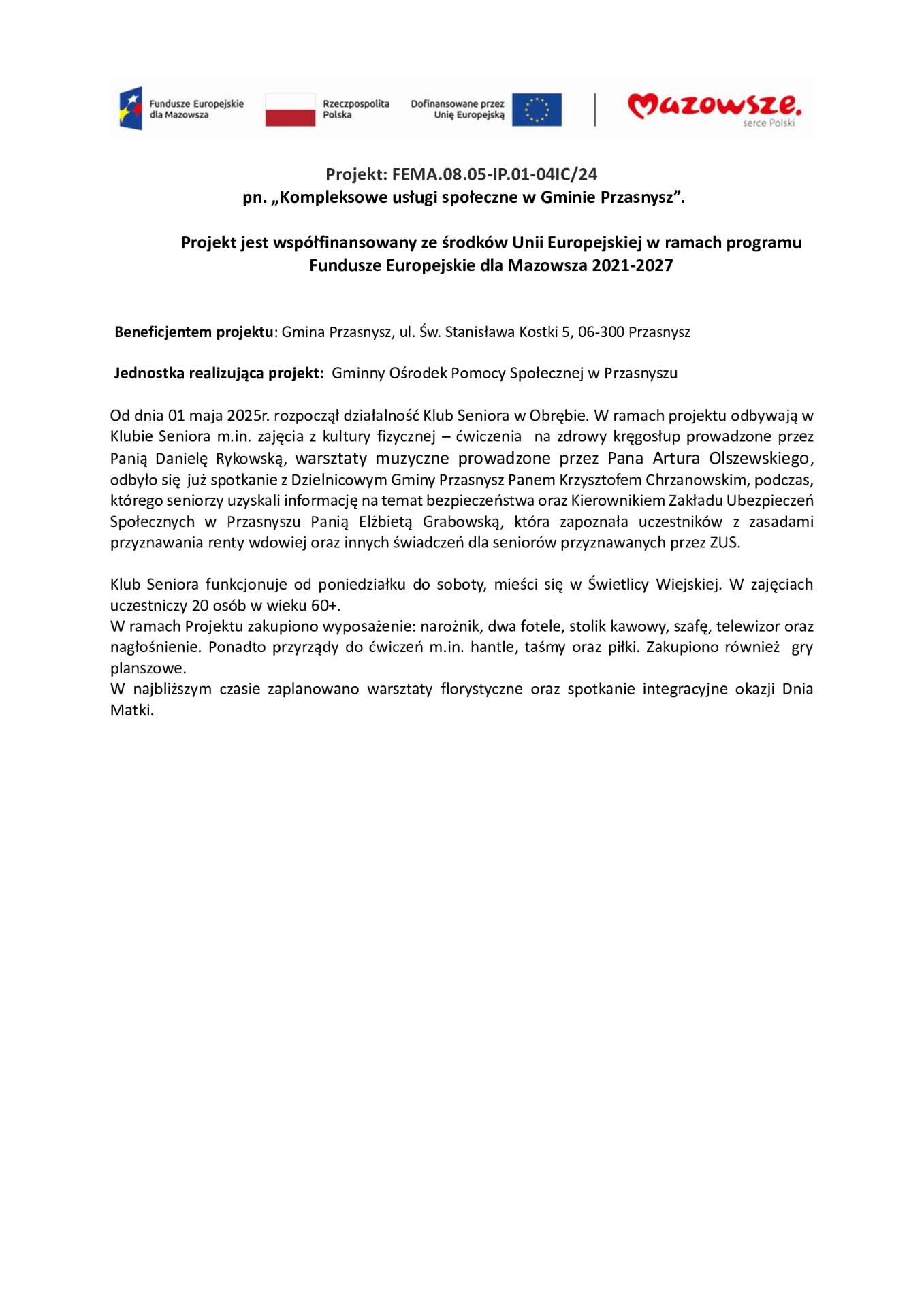 W dniu 11 marca 2025r. Wójt Gminy Przasnysz – Pani Grażyna...