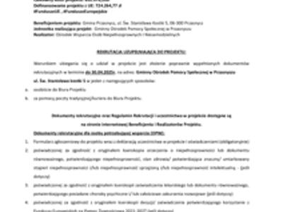 REKRUTACJA UZUPEŁNIJĄCA DO PROJEKTU ,,KOMPLEKSOWE USŁUGI SPOŁECZNE...