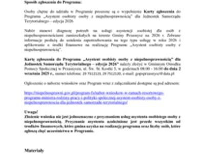 Informacja o naborze wniosków w ramach resortowego programu „Asystent osobisty osoby z niepełnosprawnością” dla Jednostek Samorządu Terytorialnego – edycja 2026