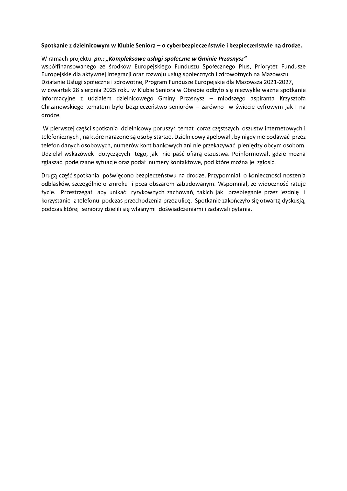 Spotkanie z dzielnicowym w Klubie Seniora – o cyberbezpieczeństwie i bezpieczeństwie na drodze.