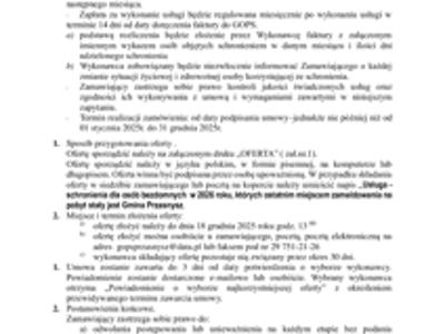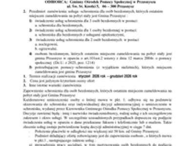 Zapytanie ofertowe ,,Usługa - schronienia dla osób bezdomnych w 2026 roku''.